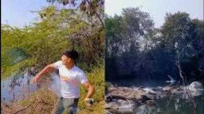 वायरल होने की चाह में युवक की खतरनाक हरकत, मगरमच्छों के बीच फेंका बम