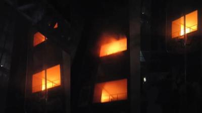 रायपुर के बेबीलोन टॉवर में भीषण आग, कई घंटों बाद काबू