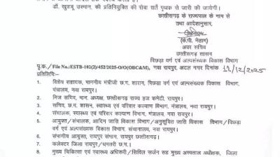 रायपुर। राज्य सरकार ने एक महत्वपूर्ण प्रशासनिक निर्णय लेते हुए Dr Khushboo Usman appointed as the new CEO of the Chhattisgarh State Haj Committee. इस नियुक्ति का आदेश 11 दिसंबर...