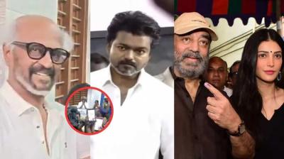 तमिलनाडु चुनाव: पोलिंग बूथ पर लगा सितारों का मेला, रजनीकांत से विजय तक ने डाला वोट।