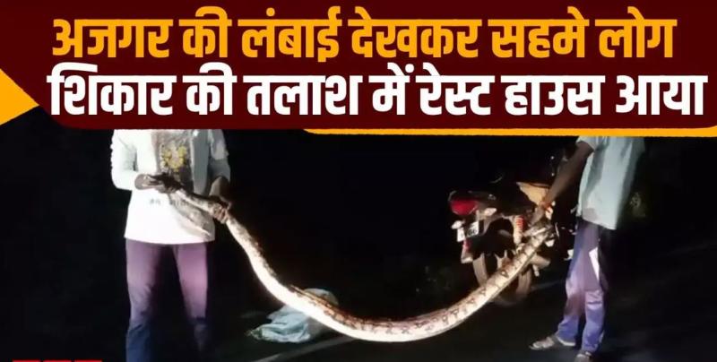 रेस्ट हाउस में घुसा विशाल अजगर: शिकार की तलाश में मचाया हड़कंप, रेस्क्यू के बाद दिखा भयावह रूप, उठाने में लगे दो लोग