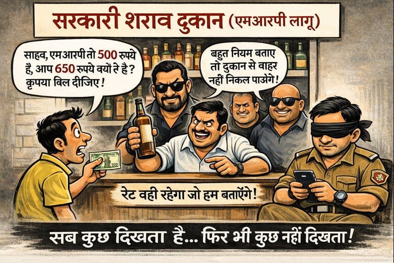 एमआरपी से ऊपर शराब बिक्री का खेल जारी, बिल मांगने पर धमकी—आबकारी विभाग की भूमिका पर सवाल