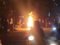 प्रत्यक्षदर्शियों के अनुसार, विवाद बढ़ने पर ठेका संचालक पक्ष ने अपने अन्य लोगों को भी मौके पर बुला लिया, जिससे माहौल और तनावपूर्ण हो गया। पुलिस के पहुंचने के बावजूद हालात बेकाबू हो गए और उपद्रवियों ने बाइक में आग लगा दी।