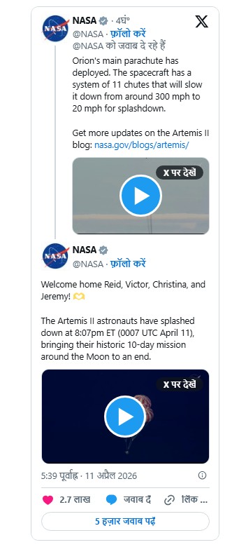 NASA Artemis I Mission सफल: चंद्रमा की परिक्रमा कर पृथ्वी पर सुरक्षित लौटा यान