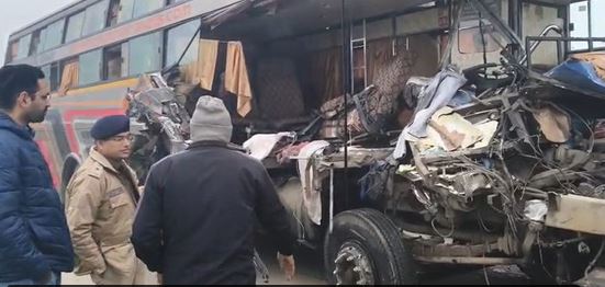 बस ट्रेलर में घुसी, 4 लोगों की मौत