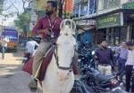 देवास में बैंक कर्मचारी का अनोखा अंदाज, घोड़े पर सवार होकर पहुंचा ऑफिस