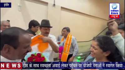 Indore : टीम के साथ स्वच्छता अवार्ड लेकर पहुँचने पर बीजेपी नेताओं ने स्वागत किया || Global Herald