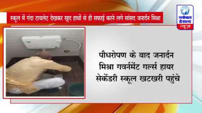 रीवा : स्कूल में गंदा टायलेट देखकर खुद हाथों से ही सफाई करने लगे सांसद जनार्दन मिश्रा || Global