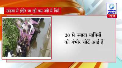 खंडवा से इंदौर जा रही बस नदी में गिरी || Global Herald News