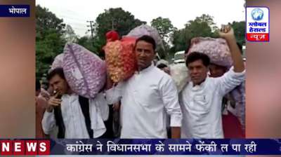 भोपाल : कांग्रेस ने विधानसभा के सामने फेंकी लहसुन || Global Herald News