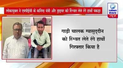 लोकायुक्त ने एमपीईबी के कनिष्ठ यंत्री और ड्राइवर को रिश्वत लेते रंगे हाथों पकड़ा || Global Herald