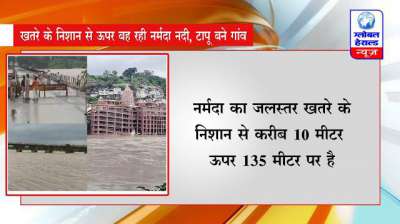 खतरे के निशान से ऊपर बह रही नर्मदा नदी, टापू बने गांव || Global Herald News