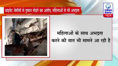 प्राइवेट जेसीबी से दुकान तोड़ने का आरोप, महिलाओं से भी अभद्रता || Global Herald News