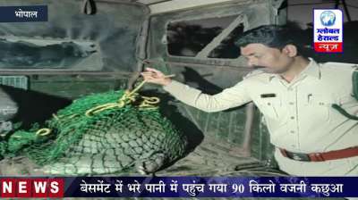 भोपाल : बेसमेंट में भरे पानी में पहुंच गया 90 किलो वजनी कछुआ || Global Herald News