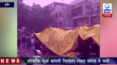 इंदौर में बारिश के बीच तिरपाल ओढ़कर बारात निकलने का वीडियो हुआ वायरल || Global Herald News