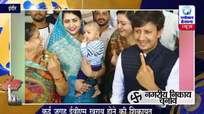इंदौर में भाजपा के महापौर प्रत्याशी पुष्यमित्र भार्गव ने बुधवार को सपरिवार मतदान किया || Global