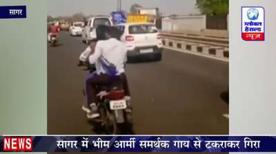 सागर में भीम आर्मी समर्थक गाय से टकराकर गिरा || Global Herald News
