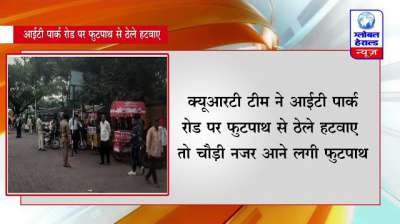 Indore : आईटी पार्क रोड पर फुटपाथ से ठेले हटवाए || Global Herald News