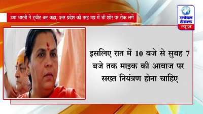 उमा भारती ने ट्वीट कर कहा, उत्तर प्रदेश की तरह मध्य प्रदेश में भी शोर पर रोक लगें || Global Herald
