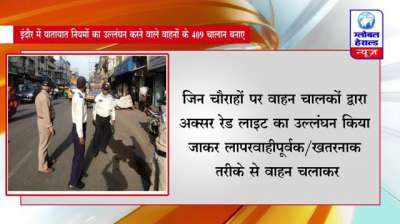 इंदौर में यातायात नियमों का उल्लंघन करने वाले वाहनों के 409 चालान बनाए || Global Herald News