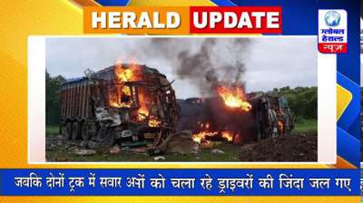 सिवनी में दो ट्रकों में टक्कर के बाद लगी आग, जिंदा जले दोनों ड्राइवर || Global Herald News
