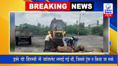 होशंगाबाद में कंटेनर में भरे थे 63 मवेशी; पुलिस ने जेसीबी की मदद से खाली कराया || Global Herald News